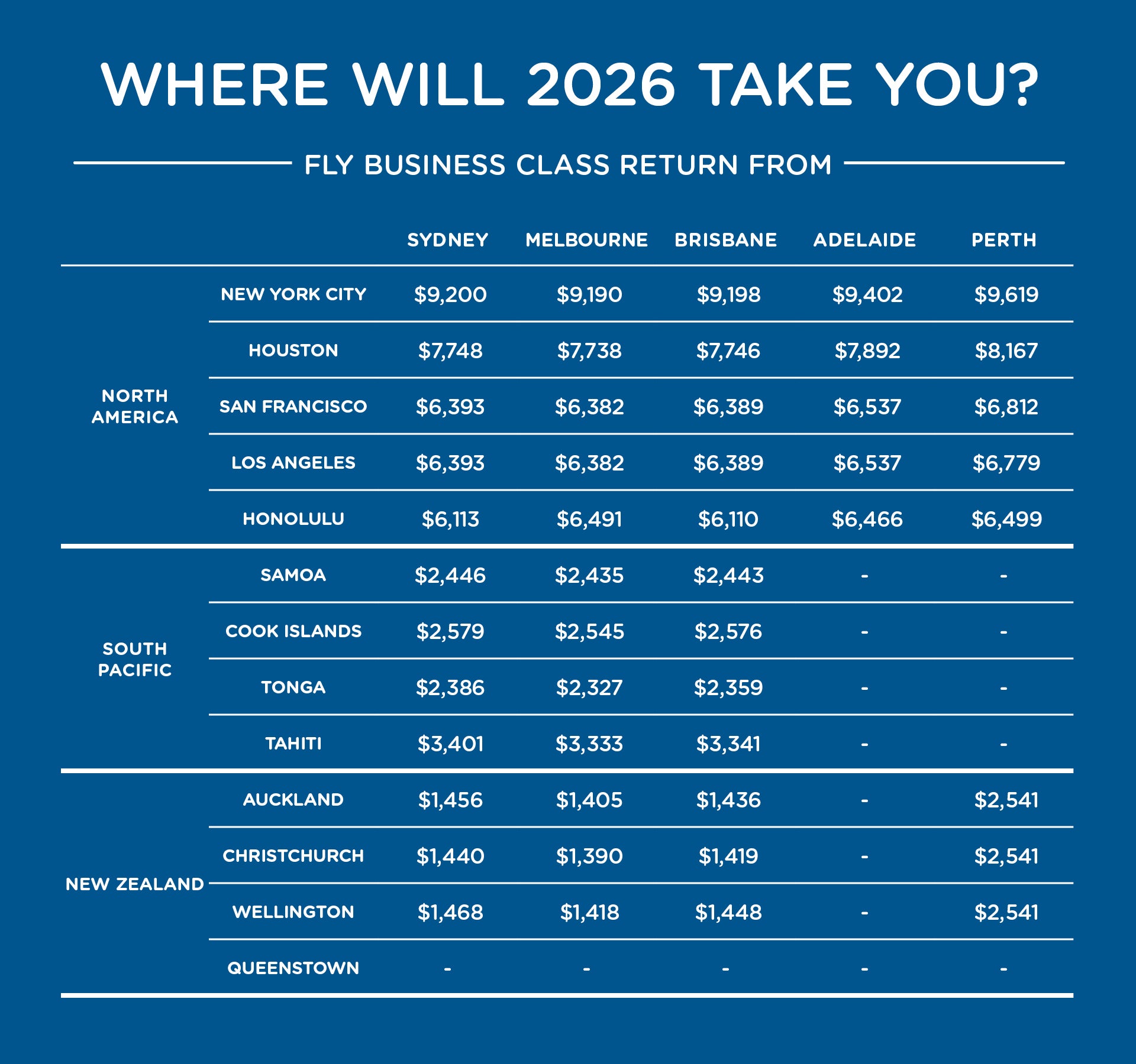 *Conditions apply. On sale until 20 January 2026, unless sold out prior. Viva Holidays packages valid for travel as specified. Air New Zealand airfares valid for travel on selected dates between 19 January - 9 December 2026; seasonal surcharges and blackout dates apply. Prices are per person in Australian dollars and are correct as at 23 December 2025 but may fluctuate if surcharges, fees, taxes or currency change. Offers subject to availability. Agents may charge service fees, rates vary. Prices displayed are ‘from’ pricing, includes all prepaid taxes and fees, except payment card fees which may be payable in addition, rates vary. Prices displayed are based on the departures dates as displayed. Alternate travel dates are subject to a seasonal surcharge. Day of week surcharges, flight restrictions and blackout dates may apply. Please check all prices, availability and other information before booking. Air New Zealand, Viva Holidays and Helloworld Travel Booking Terms and Conditions apply. ABN 84 003 237 296.